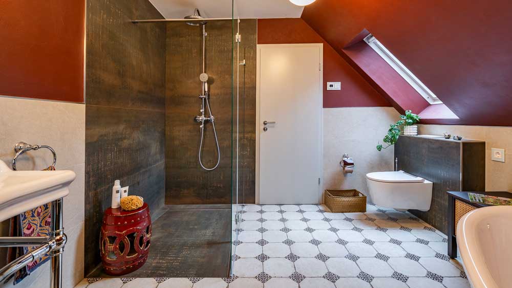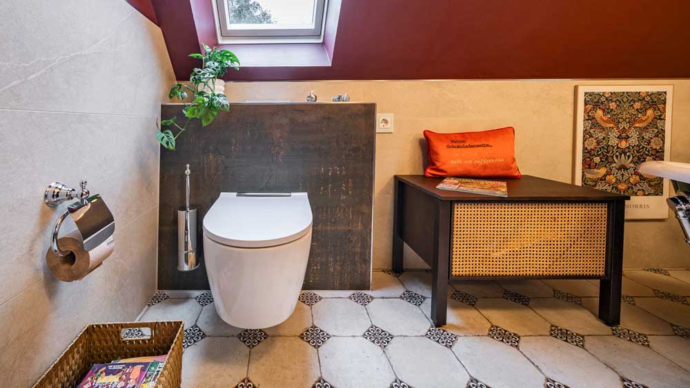 Dieses Referenzprojekt zeigt, wie wir traditionelle Stilnoten mit moderner Technik verbinden – für ein Bad, das gleichermaßen stilvoll wie alltagstauglich ist.